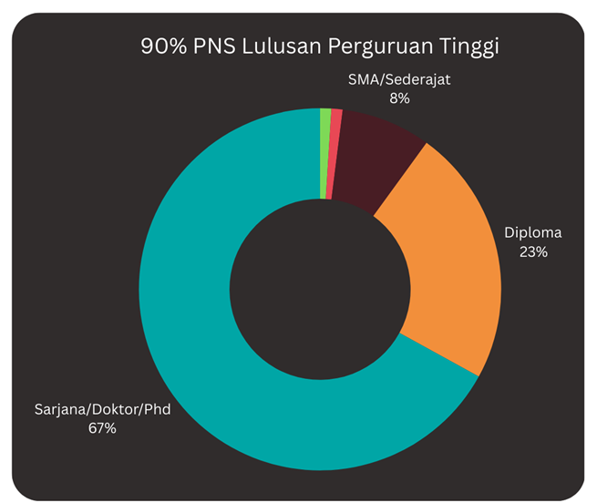 ● Sarjana/Doktor: Sebanyak 1.611 orang atau 67% dari total PNS.