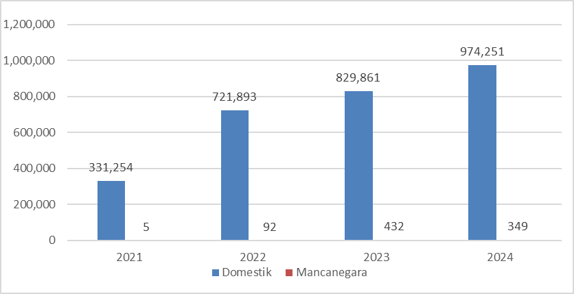 Perkembangan Jumlah Wisatawan Kota Magelang Tahun 2021-2024 Sumber : Data diolah, 2025