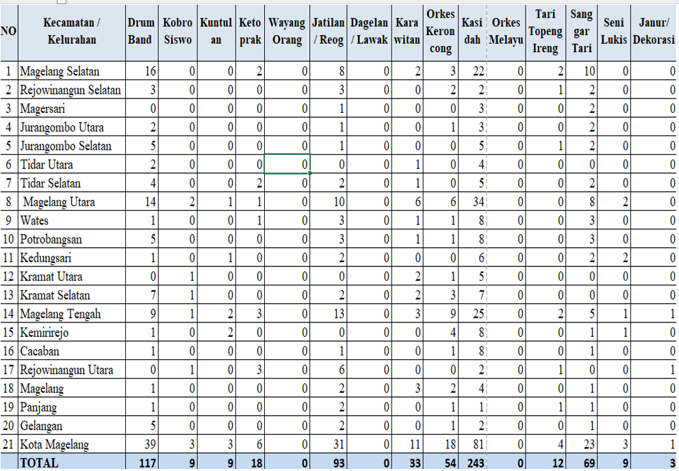 Sumber: Dinas Kepemudaan Olah Raga dan Pariwisata Kota Magelang